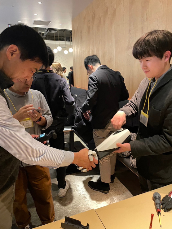自分で開発したロボットハンドの認知を広げるため、様々なイベントにロボットハンドを展示し、体験ができる場を設けている。ロボットハンドのデザインやその応答性、動き、握手した際の独特な感触などの感想を直接きくことができ、新たなアイデアやモチベーションを頂くことができた。
